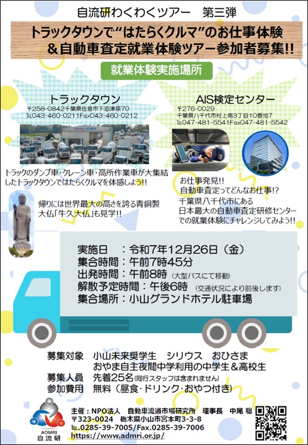 自動車流通市場研究所 は、貧困やネグレクトで居場所のない子供たちに対して、包括的な支援を行っている施設と連携し、その子供たちに、夢と希望が持てるような職場の体験学習を定期開催するとともに、ここを卒業し高校以降に進学する子供たちに対して、就学支援と自動車業界への就業を支援する事業を行います。また一方、その受け皿となる自動車業界の成長と発展のための各種支援も実施します。こうして、この子供たちと自動車業界との懸け橋となり、子供たちが貧困の連鎖を断ち切り、豊かな社会生活が実現することを目的とする特定非営利活動法人で、今回、当社に体験学習受け入れの話があり、ご協力させて頂いたものです。