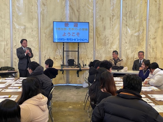 12月26日に、「わくわく仕事体験ツワー」に応募の子供たち27名と同行・関係者15名の42名が大型バスで来社しました。当社からは、会長、副社長及び職場の各課長が対応しました。