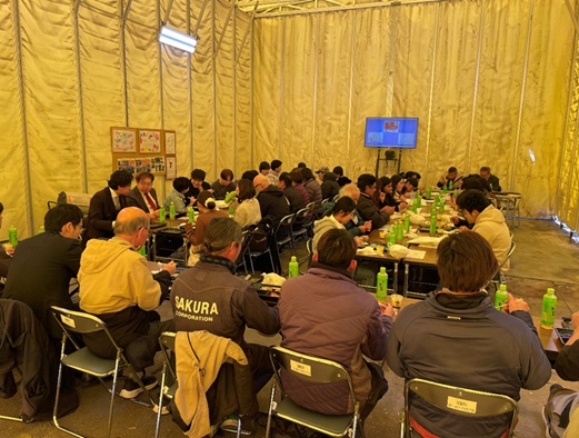 その後、全員で準備した弁当、デザートを食べて懇談、当社からは地域との共生をテーマに子供の絵をフェンスに貼る取組を行っていることや、明るい職場づくりから社内旅行、忘年会などを行っていることを紹介。子供たちからは、仕事は楽しいですか、どうやったら仕事ができるようになるのですかなど多くの質問があり、現場の課長から回答し、当社も学んだ1日となりました。
